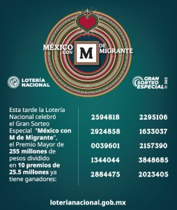 “México con M de Migrante”: la Lotería Nacional celebra a la comunidad migrante con premios históricos