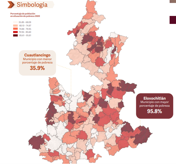 Mientras que la ciudad de Puebla y su zona metropolitana se dinamizan con actividad automotriz, educación superior y empleo gubernamental, municipios como Eloxochitlán (95.8% de pobreza) enfrentan una realidad completamente distinta: