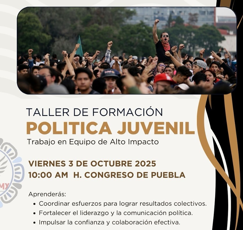 El Congreso del Estado de Puebla continúa consolidándose como un espacio abierto a la juventud, al celebrar este viernes 3 de octubre el tercer Taller de Formación Política Juvenil, respaldado por la presidenta del Congreso, Laura Artemisa García Chávez, quien ha mostrado un firme compromiso en abrir las puertas del recinto legislativo a colectivos y universitarios.